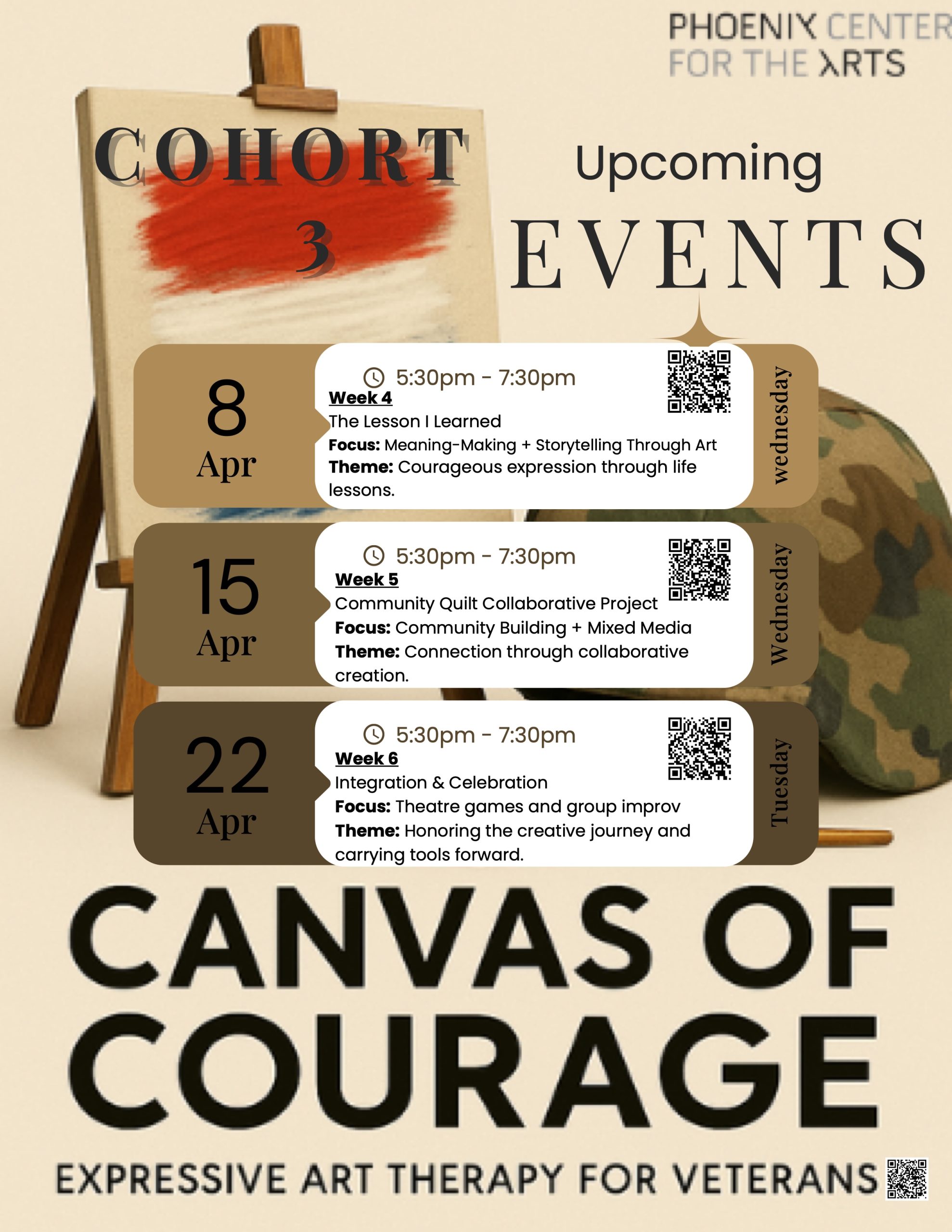 Canvas of Courage is a veteran-focused expressive art therapy program designed to support mental health, emotional well-being, and community connection.