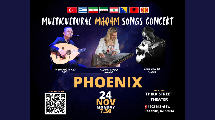 A multicultural concert uniting melodies from Turkey, Greece, Iran, Syria, Lebanon, Bosnia, Albania, and North Macedonia — celebrating the shared heritage of Maqam music through oud, qanun, and guitar.